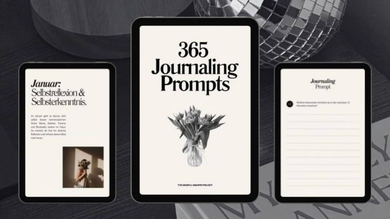 Mit unserem 365 Journaling Prompts E-Book bekommst du ein ganzes Jahr voller kraftvoller Impulse, die dich zurück zu dir selbst bringen: